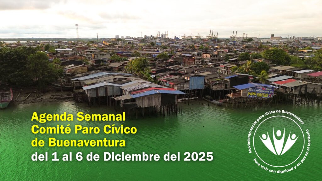El Movimiento Social Paro Cívico de Buenaventura informa el siguiente cronograma de actividades programadas para la semana comprendida entre el 01 y el 06 de diciembre de 2025. Estas acciones fortalecen el seguimiento, la concertación y el avance de los acuerdos del Paro Cívico junto a instituciones, comunidades y actores del territorio.